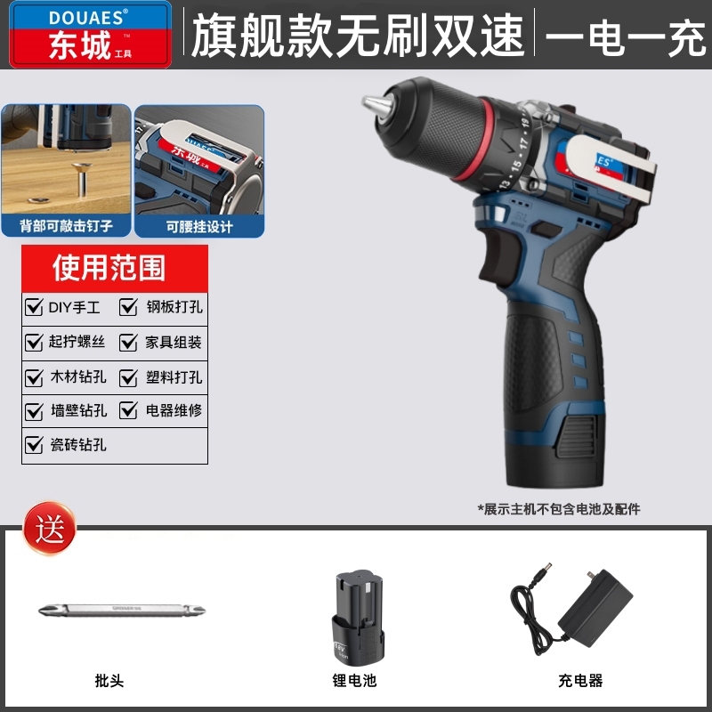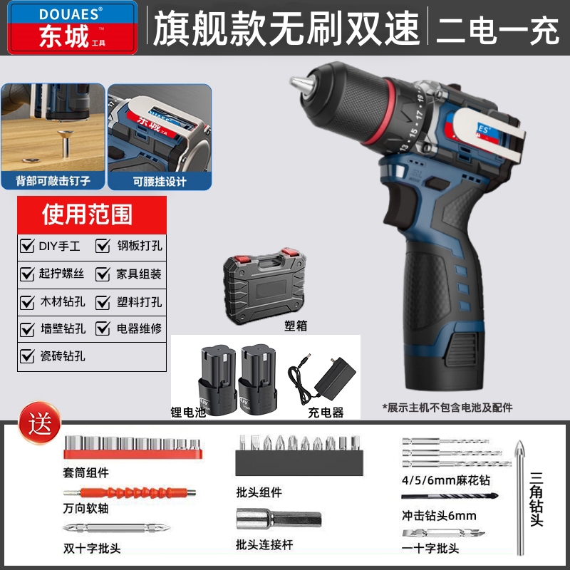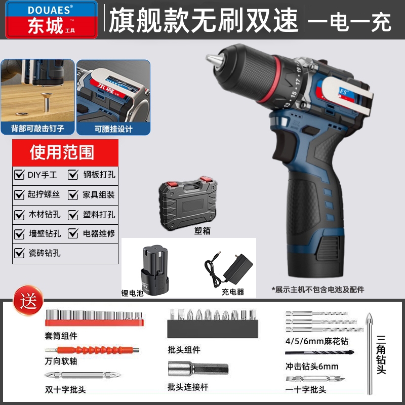 > 东城16.8V锂电无刷手电钻充电式小钢炮家用小型手枪钻电动螺丝刀