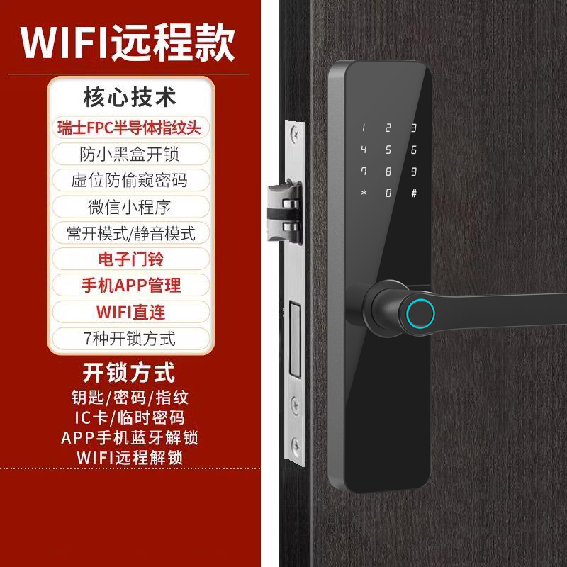 木门指纹锁办公室门房间门密码锁电子智能门锁卧室公寓室内智能锁
