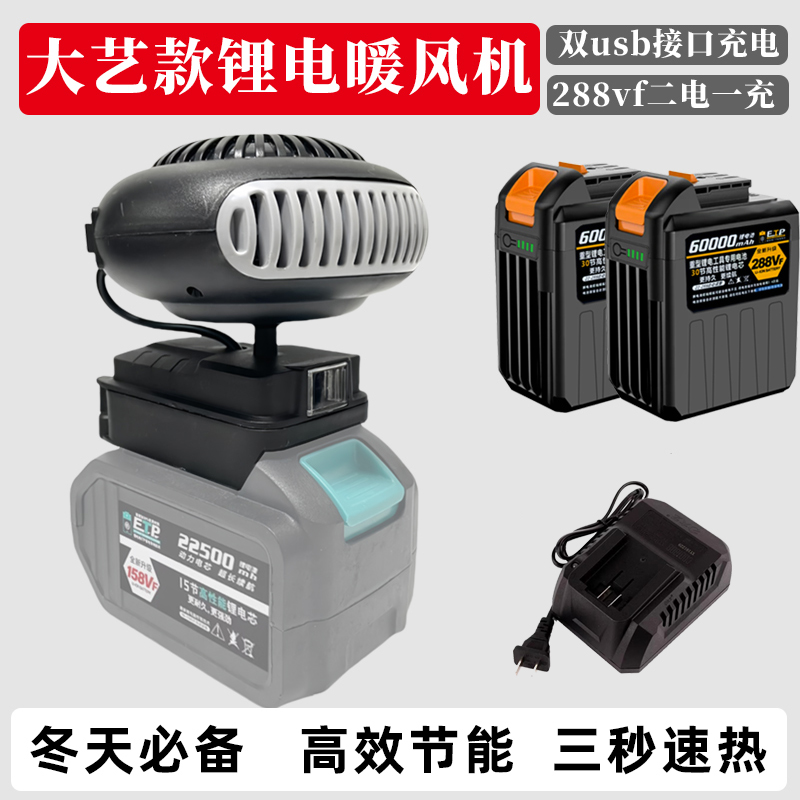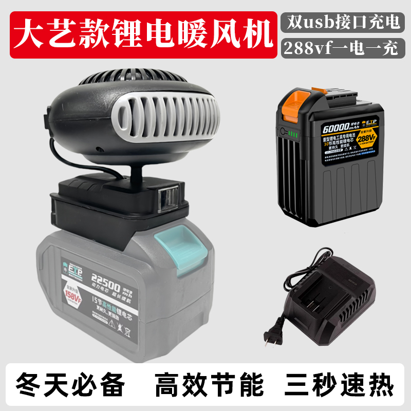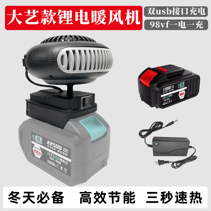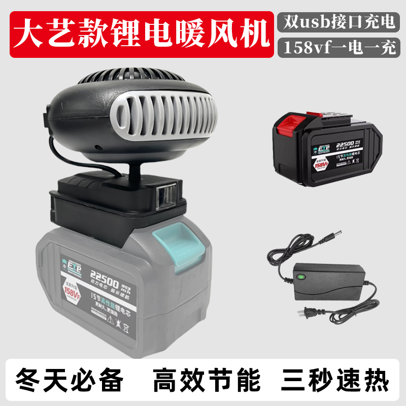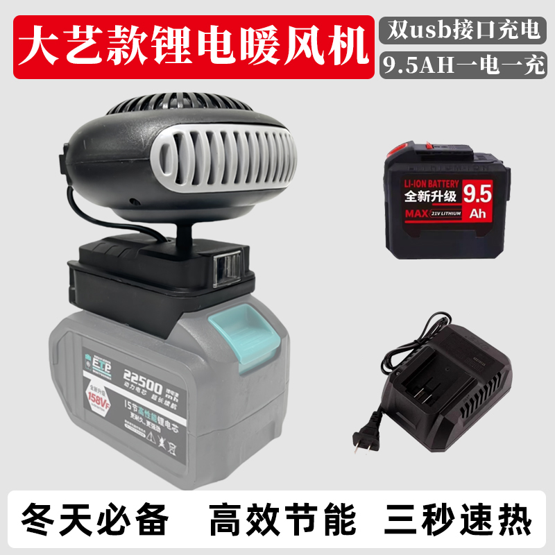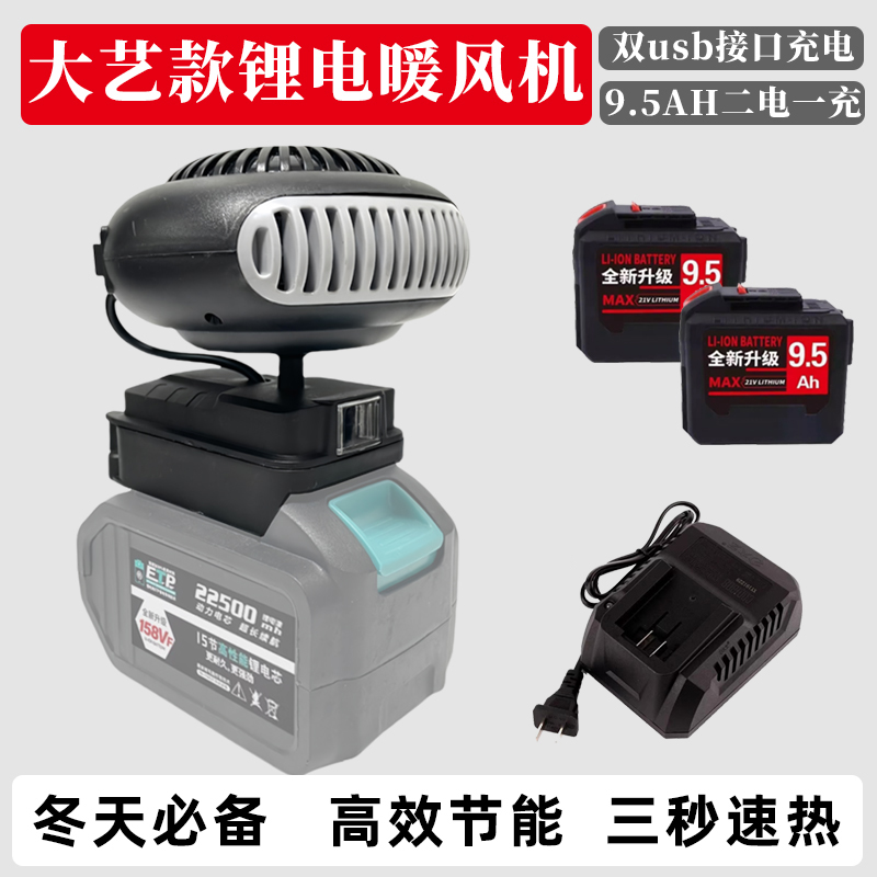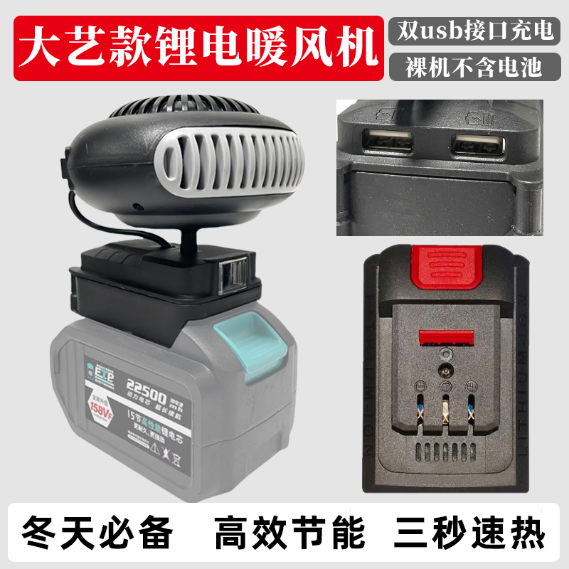 > 适配大艺通用电池锂电池工地冬季便携充电暖风机不插电家用取暖器