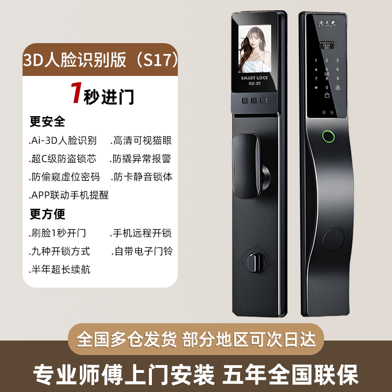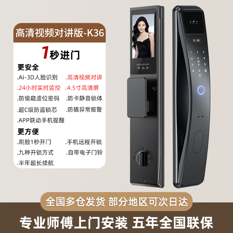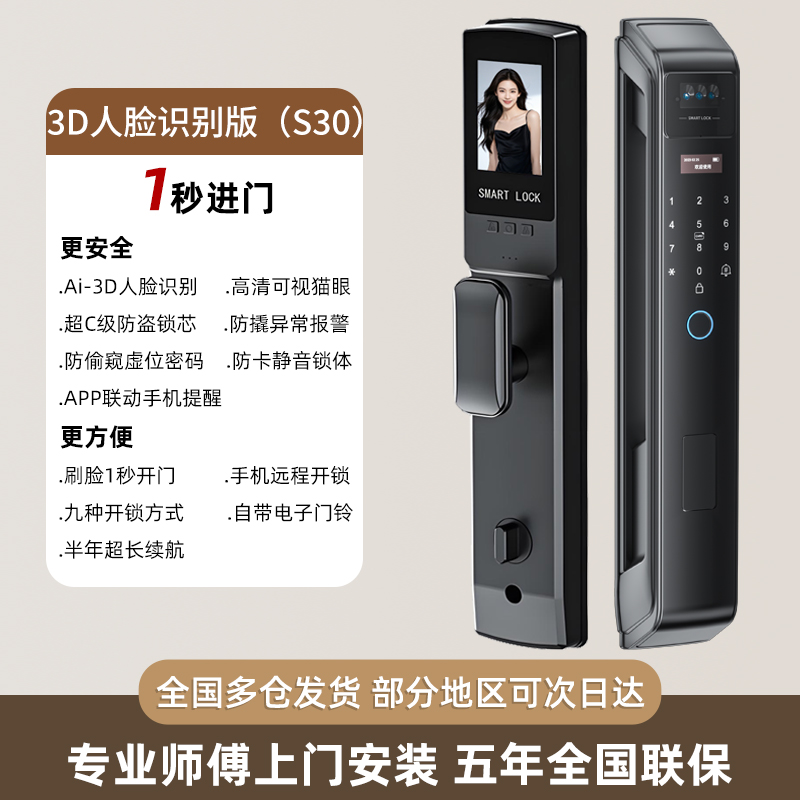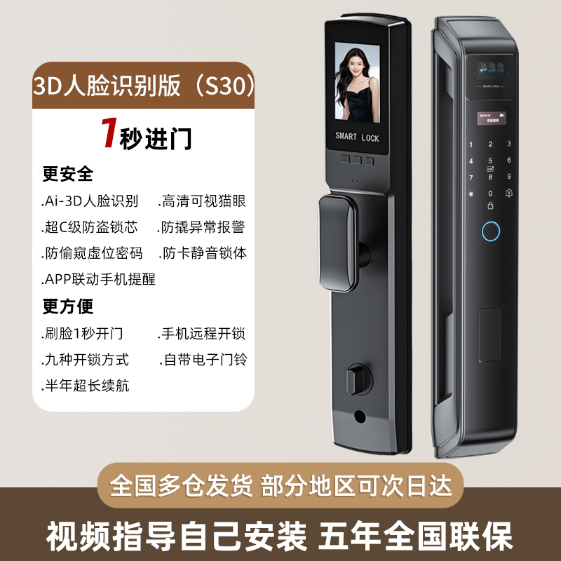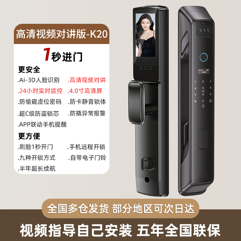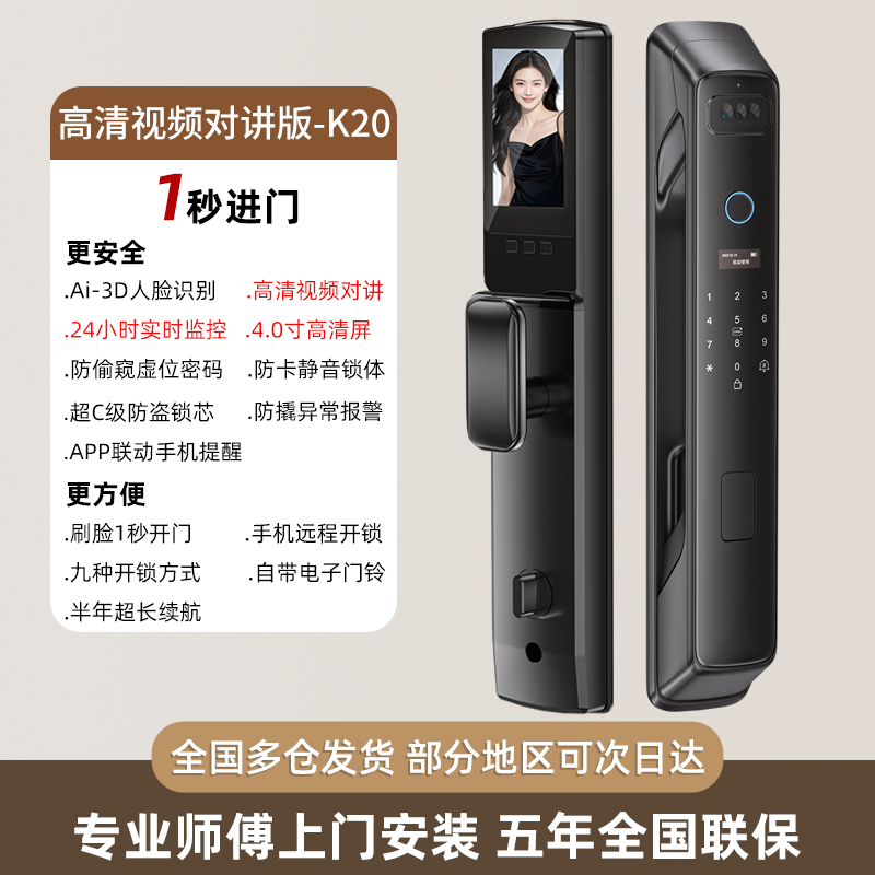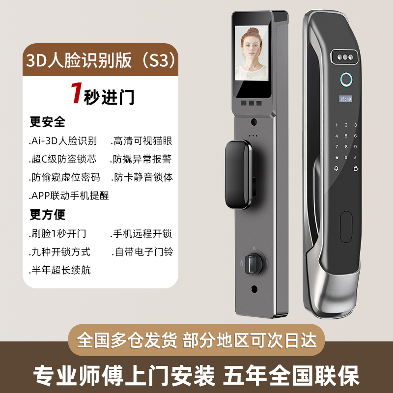 > 3d人脸识别智能门锁家用指纹锁防盗门智能锁对讲电子锁密码锁工厂