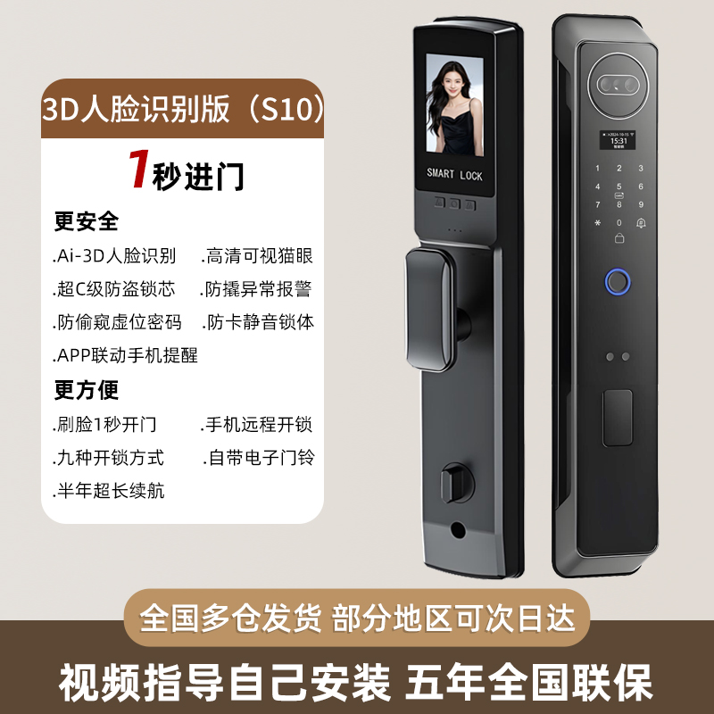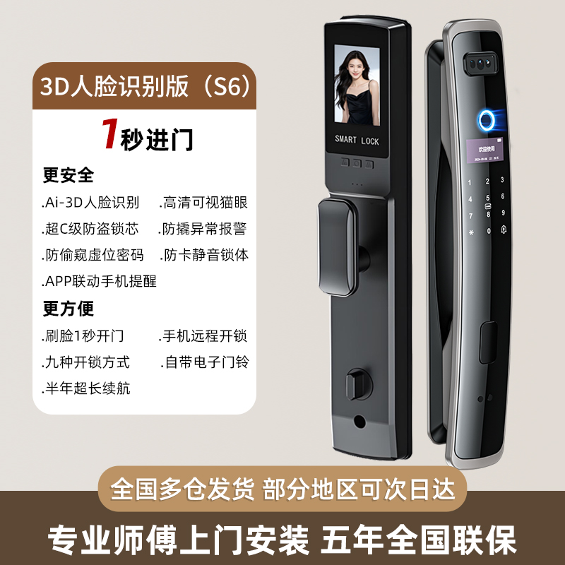 3d人脸识别智能门锁家用指纹锁防盗门智能锁对讲电子锁密码锁工厂