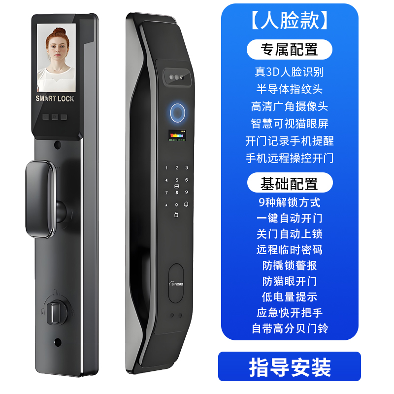 入户门指纹锁防盗密码锁家用门锁智能门锁3D人脸识别全自动电子锁
