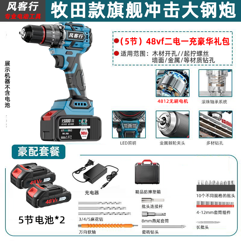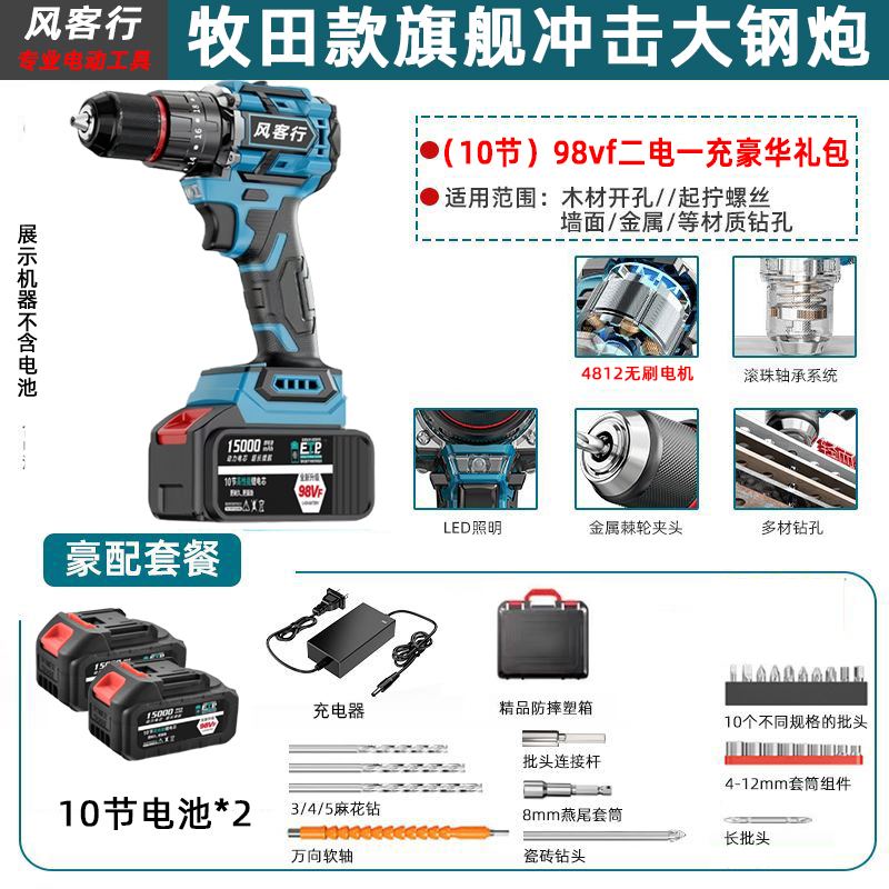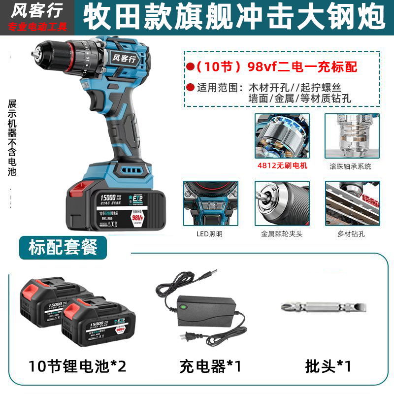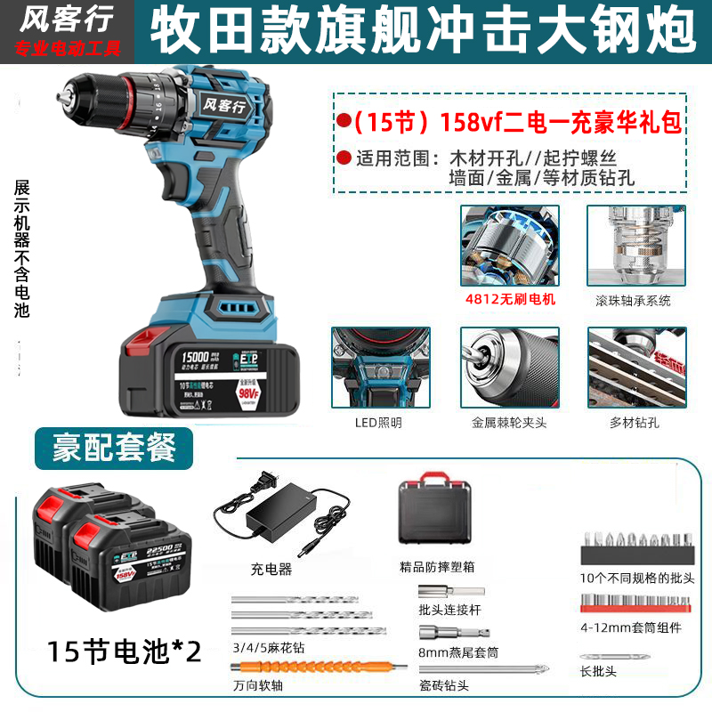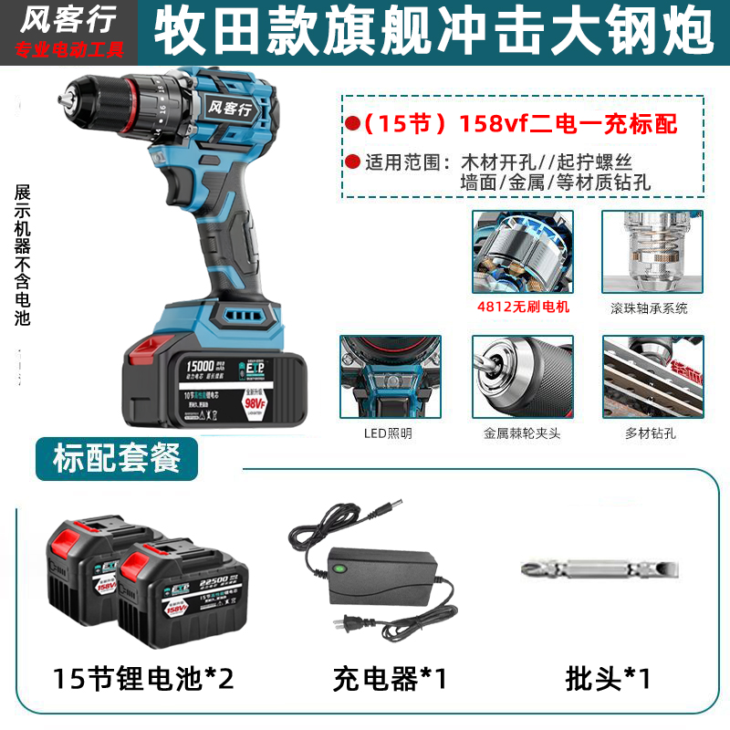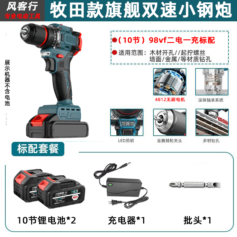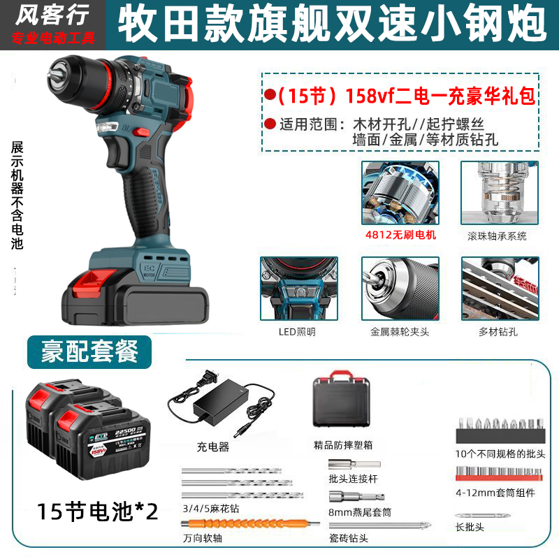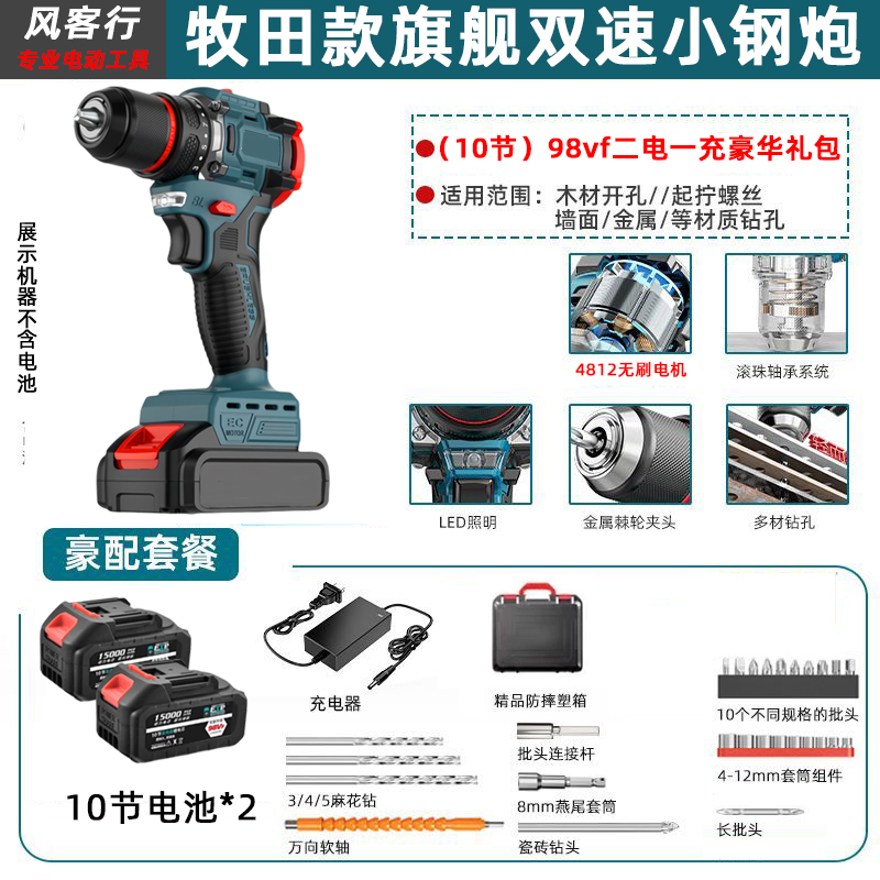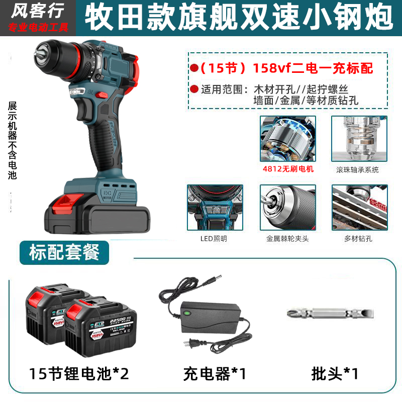 > 21V无刷牧田通用风客行锂电钻金属夹头无刷小钢炮充电式手电钻