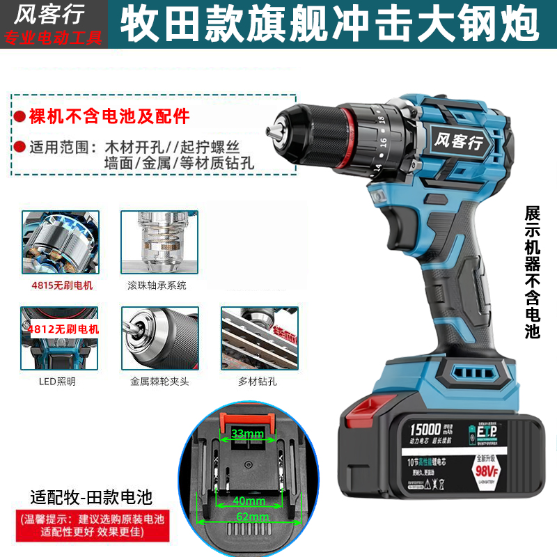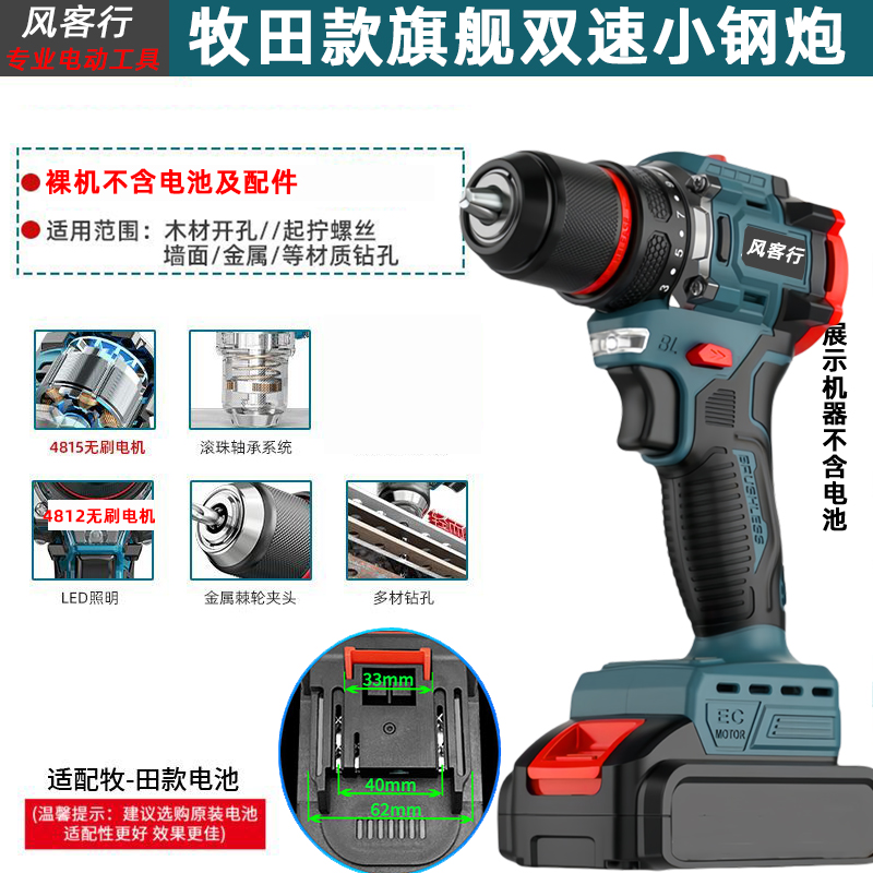 21V无刷牧田通用风客行锂电钻金属夹头无刷小钢炮充电式手电钻