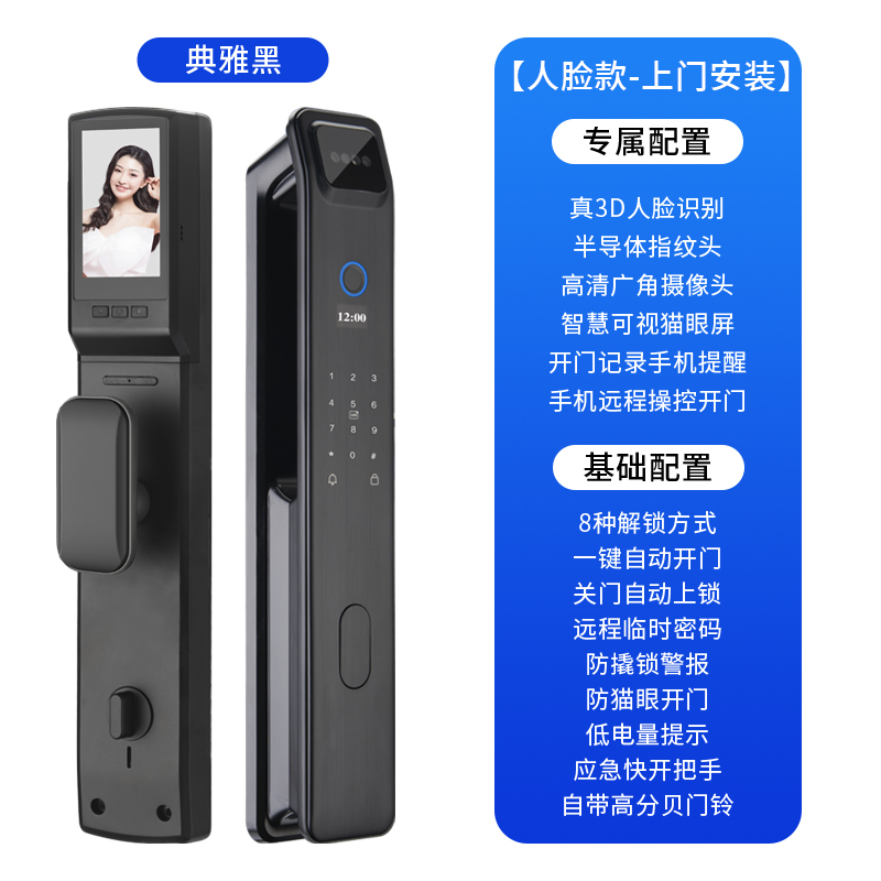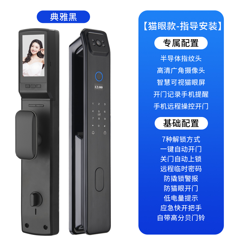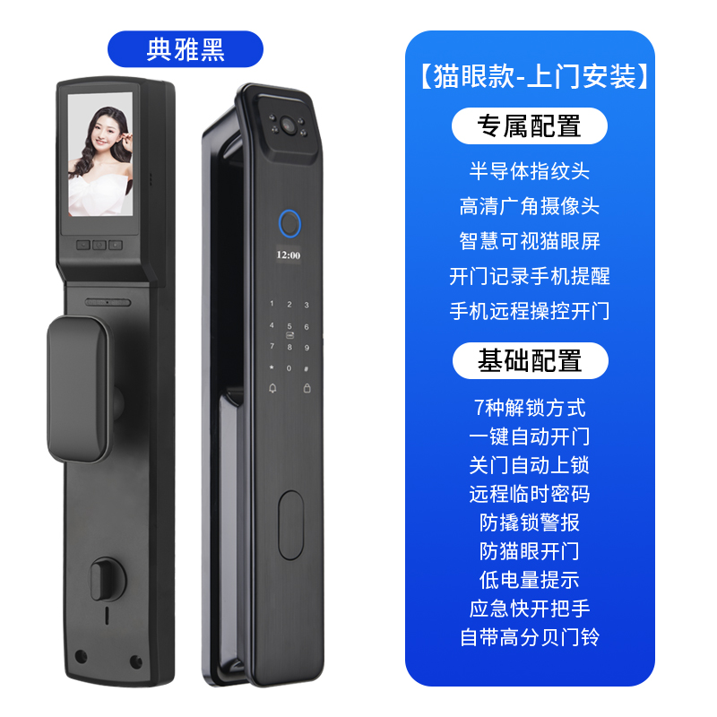 > 可视猫眼指纹锁人脸识别智能锁全自动密码电子门锁防盗门入户大门