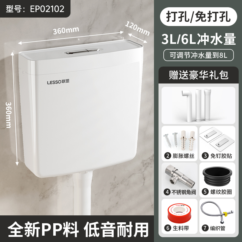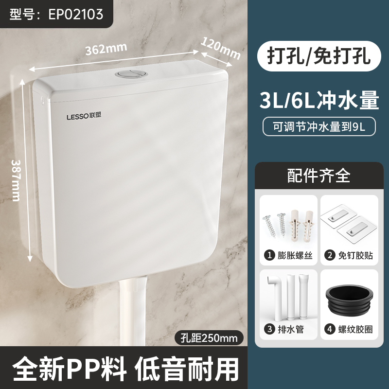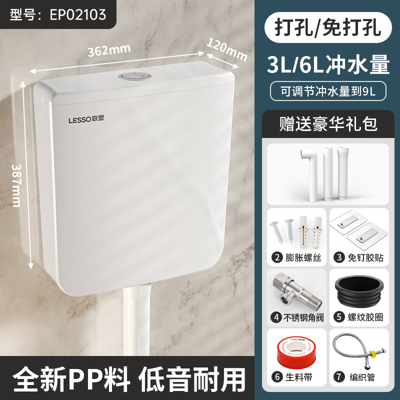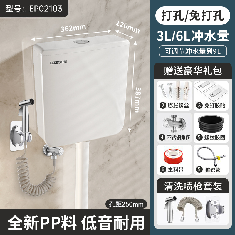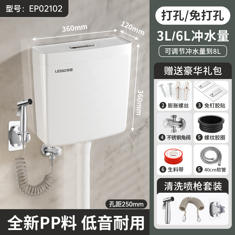 联塑厕所冲水箱家用卫生间蹲便器蹲坑抽水马桶节能壁挂墙式大冲力