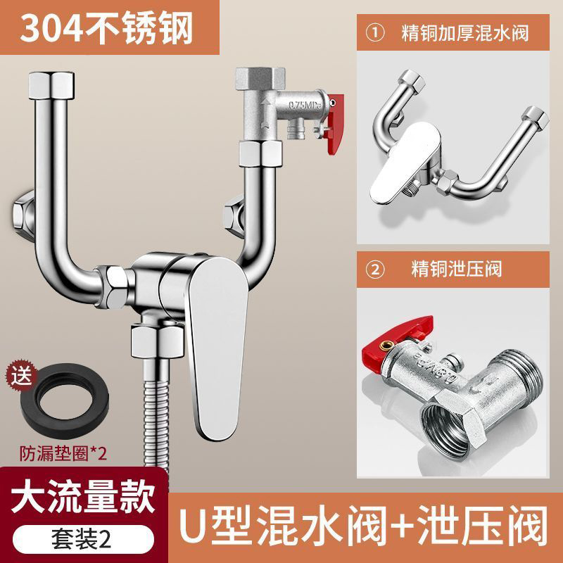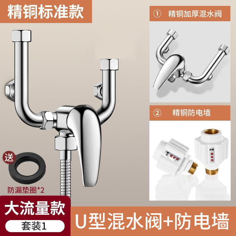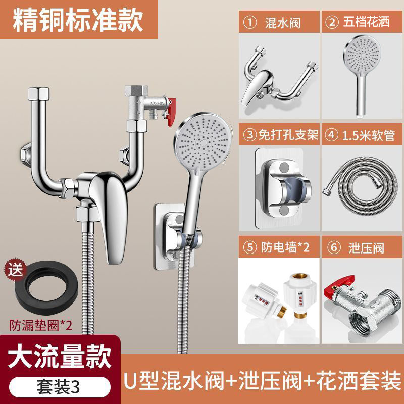 电热水器混水阀冷热淋浴水龙头配件明装通用U型开关五档花洒套装