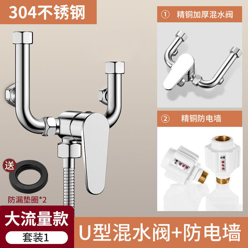 > 电热水器混水阀冷热淋浴水龙头配件明装通用U型开关五档花洒套装